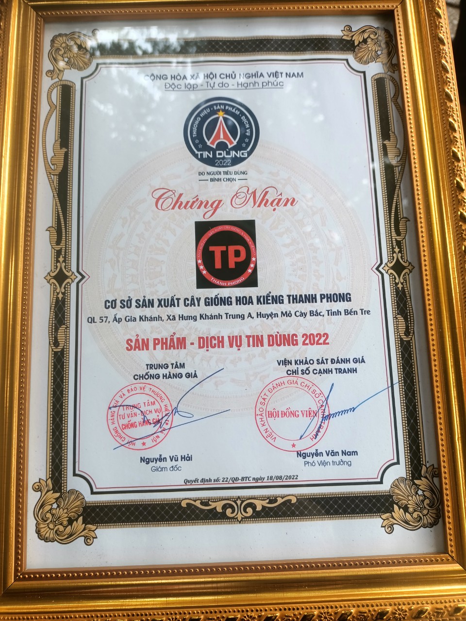 Trước tiên CƠ SỞ SẢN XUẤT CÂY GIỐNG HOA KIỂNG THANH PHONG xin gửi tới Quý khách hàng lời chào trân trọng và cảm ơn sâu sắc đối với sự quan tâm mà Quý khách hàng đã dành cho chúng tôi suốt thời gian qua. CƠ SỞ SẢN XUẤT CÂY GIỐNG HOA KIỂNG THANH PHONG Là thành viên của hệ thống nangtamthuonghieu.vn tại Quốc lộ 57 ấp Gia Khánh xã Hưng Khánh Trung A, Huyện Mỏ Cày Bắc tỉnh Bến Tre là cơ sở cung cấp các loại cây giống: cây ăn quả, cây lâm nghiệp và các loại cây làm gỗ uy tín tại Bến Tre và các tỉnh Lân Cận ...